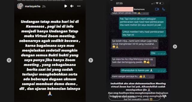 Marissya Icha Kecewa Pertemuannya Dengan Kemensos Berubah Menjadi Virtual Meeting