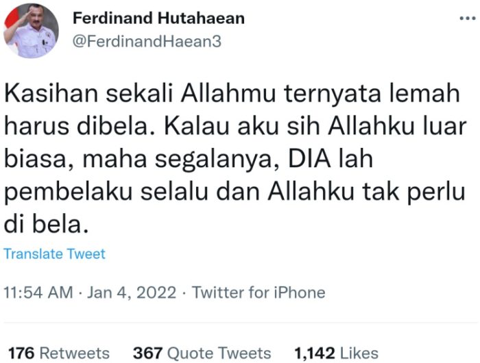 Tagar TangkapFerdinand Menggema di Twitter Setelah Ferdinand Tulis Cuitan “Allahmu Lemah”