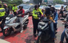 Polres Depok Bagikan Bendera Merah Putih Sambil Edukasi Pengendara